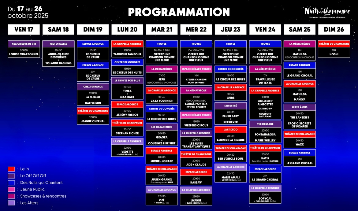 Vous voulez savoir qui joue où et quand pendant les Nuits de Champagne ?